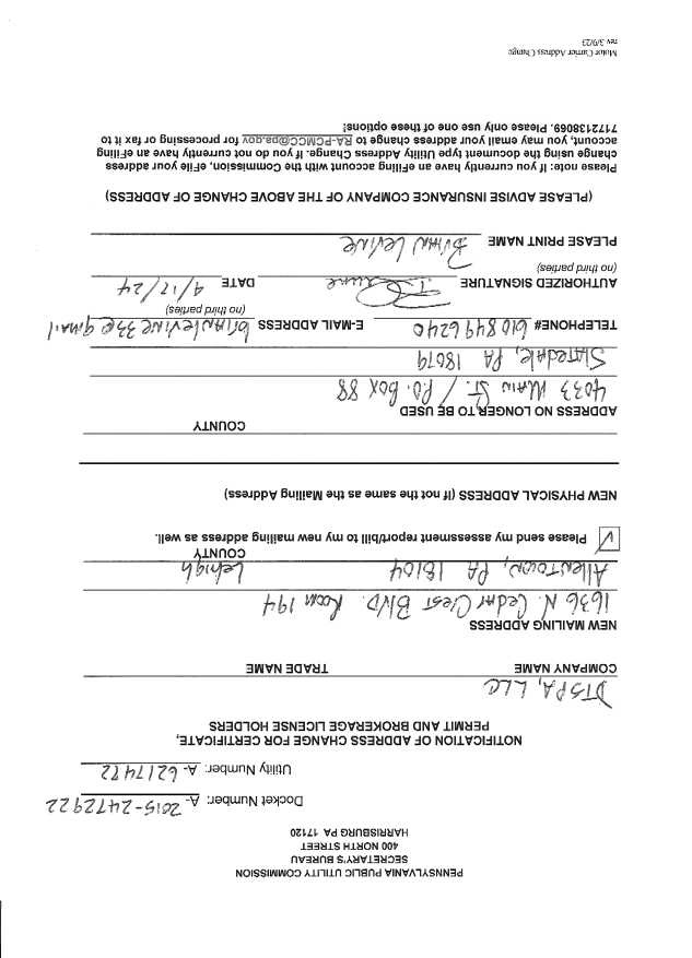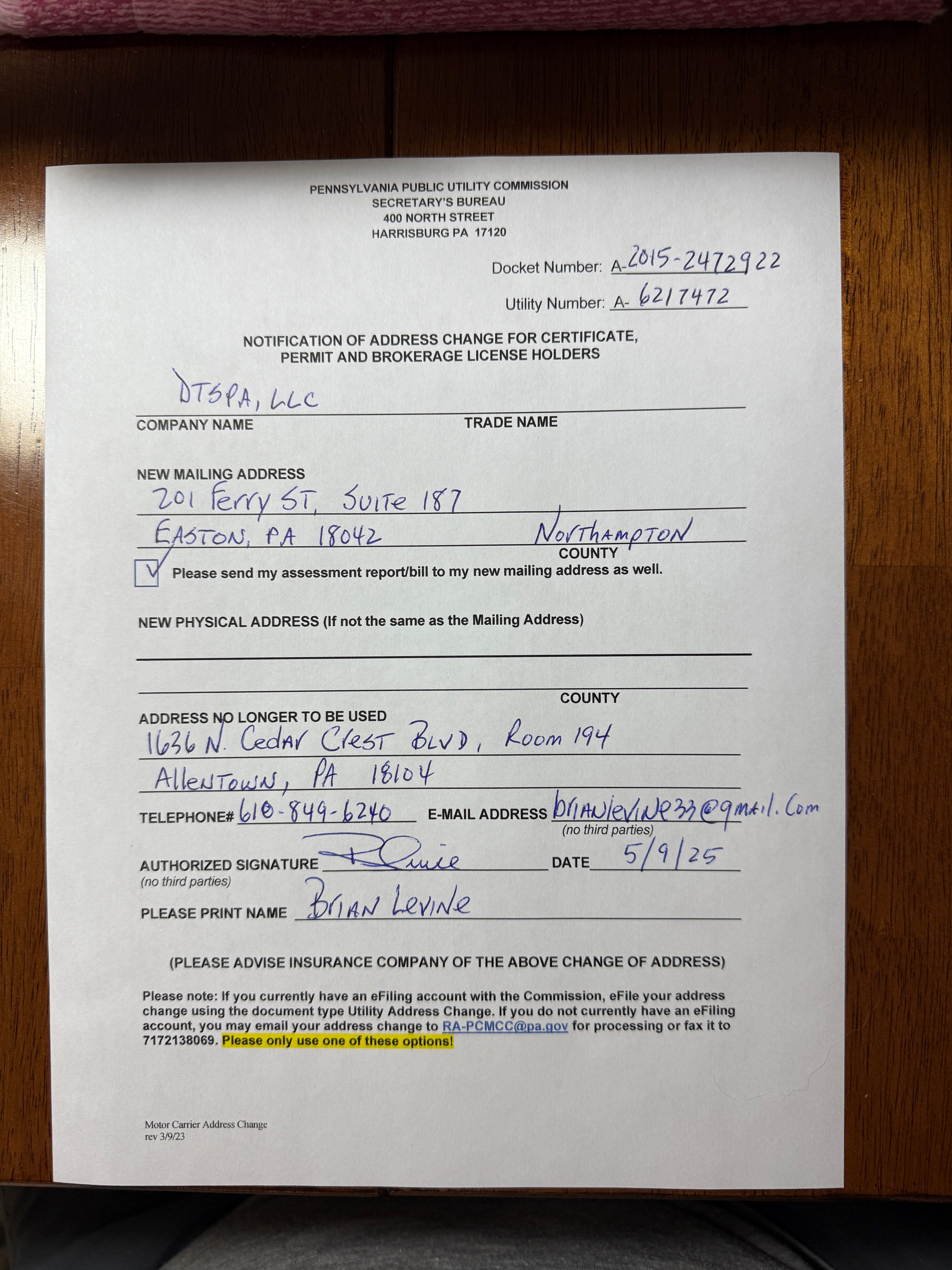 | ADDRESS CHANGE DTSPA LLC A-2015-2472922.JPG | Address Change | 1583387 | 5/12/2025 | 5/12/2025 | A-2015-2472922 | |