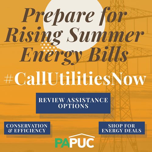 HARRISBURG – With costs for electric generation increasing on June 1 for many utility customers, the Pennsylvania Public Utility Commission (PUC) reminds consumers they have options to manage anticipated higher bills and, in particular, stresses that consumers currently struggling to pay monthly bills should act now and seek assistance by contacting their utility.