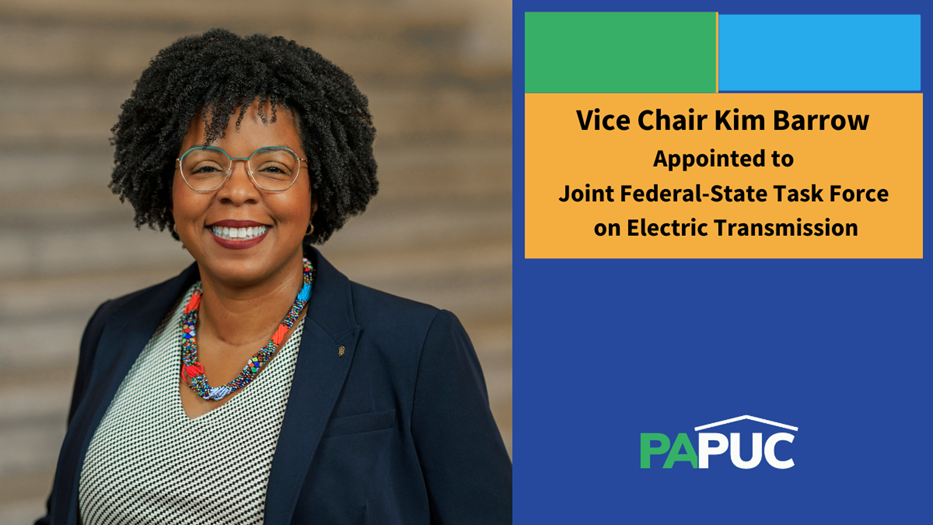 HARRISBURG – Pennsylvania Public Utility Commission (PUC) Vice Chair Kimberly Barrow has been appointed to serve as one of ten state utility commission representatives on the Joint Federal-State Task Force on Electric Transmission.
