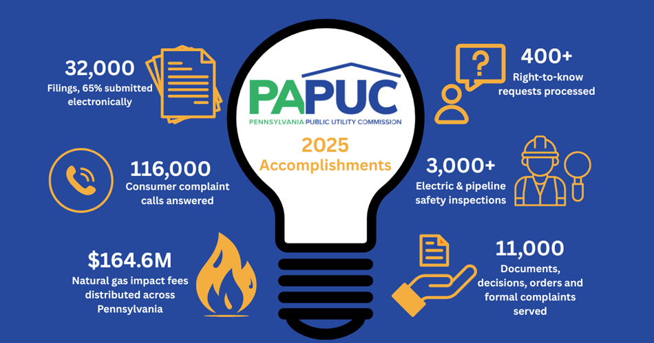 - Through the Bureau of Administration, the PUC distributed $164.6 million in natural gas impact fees in 2025, bringing the 14-year total to more than $2.8 billion for Pennsylvania communities.