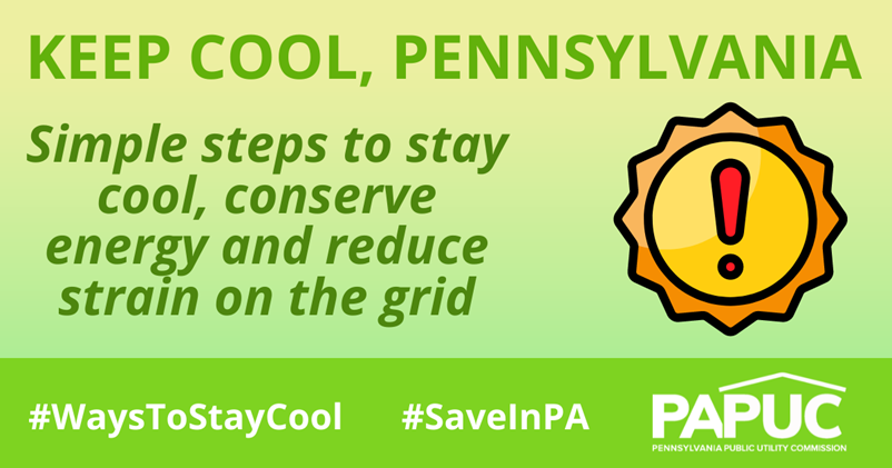 HARRISBURG – With Pennsylvania gripped by a prolonged heat wave — part of a larger system of extreme temperatures stretching across the East Coast — the Pennsylvania Public Utility Commission (PUC) is urging residents to help themselves and their communities through #WaysToStayCool and #SaveInPA.
