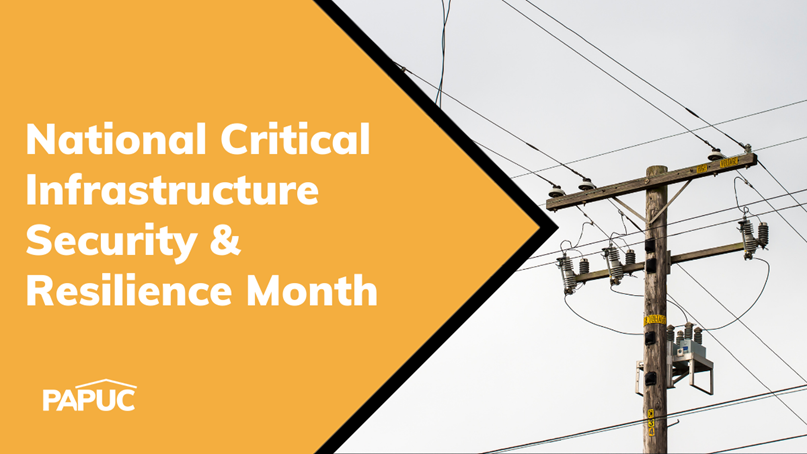 HARRISBURG – Marking the start of National Critical Infrastructure Security and Resilience Month – observed every November - the Pennsylvania Public Utility Commission (PUC) is emphasizing the importance of modernizing and protecting the state’s critical utility systems to meet rising energy demands and withstand growing physical, cyber, and weather-related threats.
